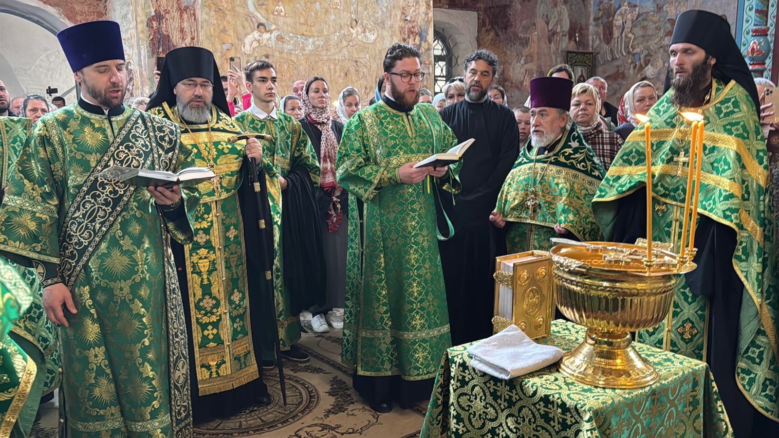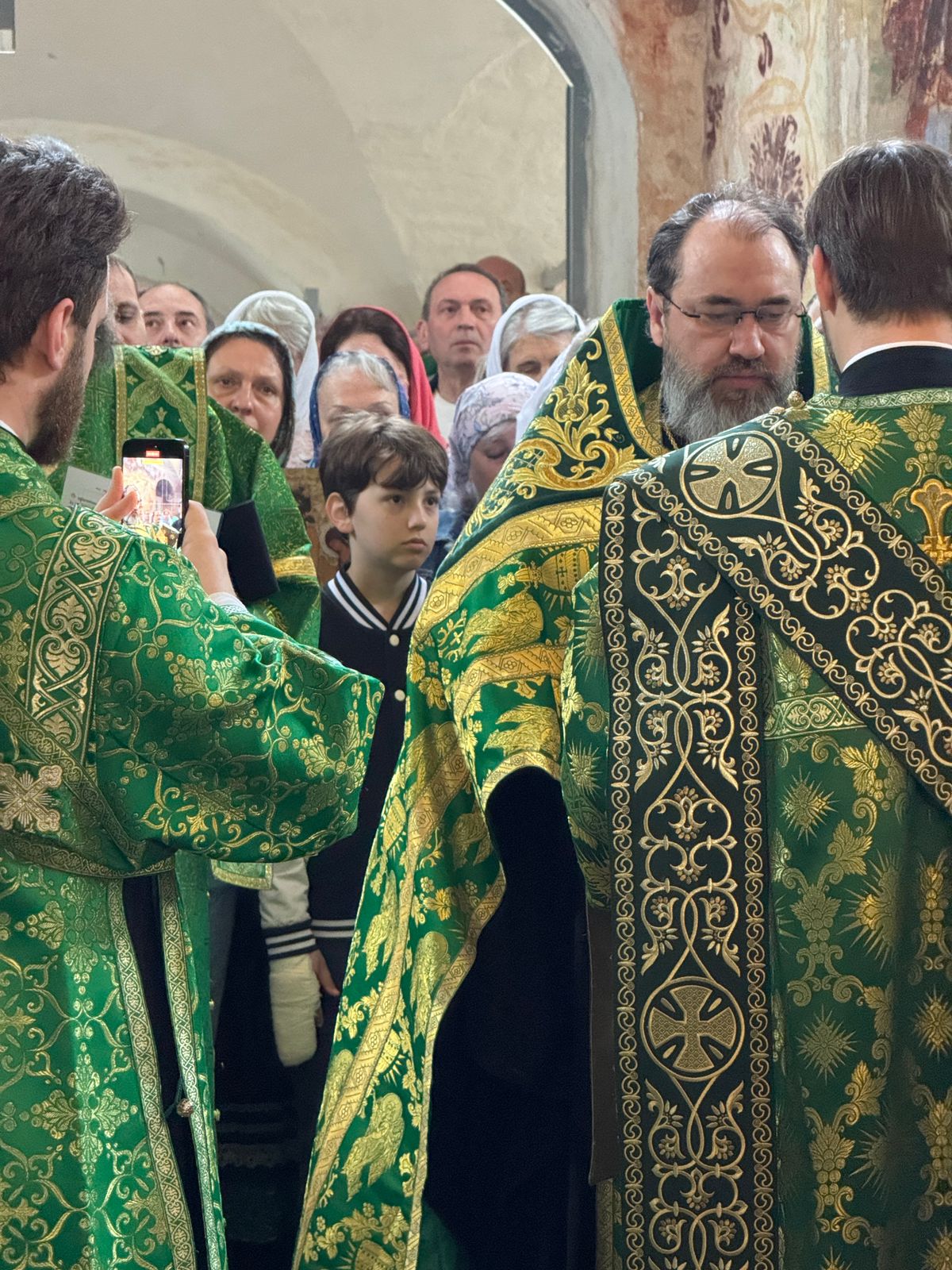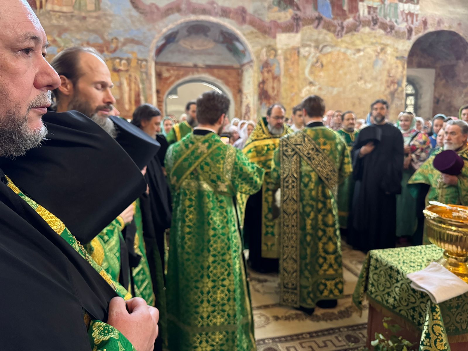 В Троицком соборе Божественную Литургию возглавил наместник монастыря игумен Антоний в сослужении с братией монастыря, диаконское служение возглавил протодьякон Георгий Стефанов.